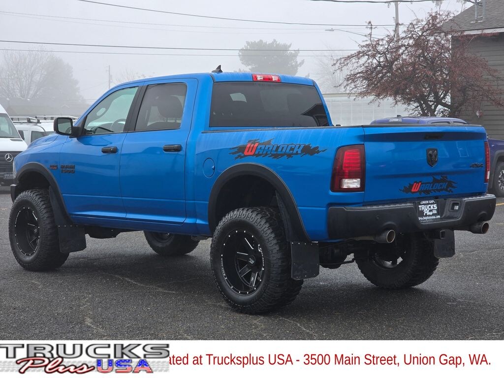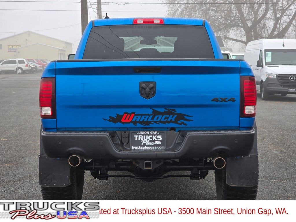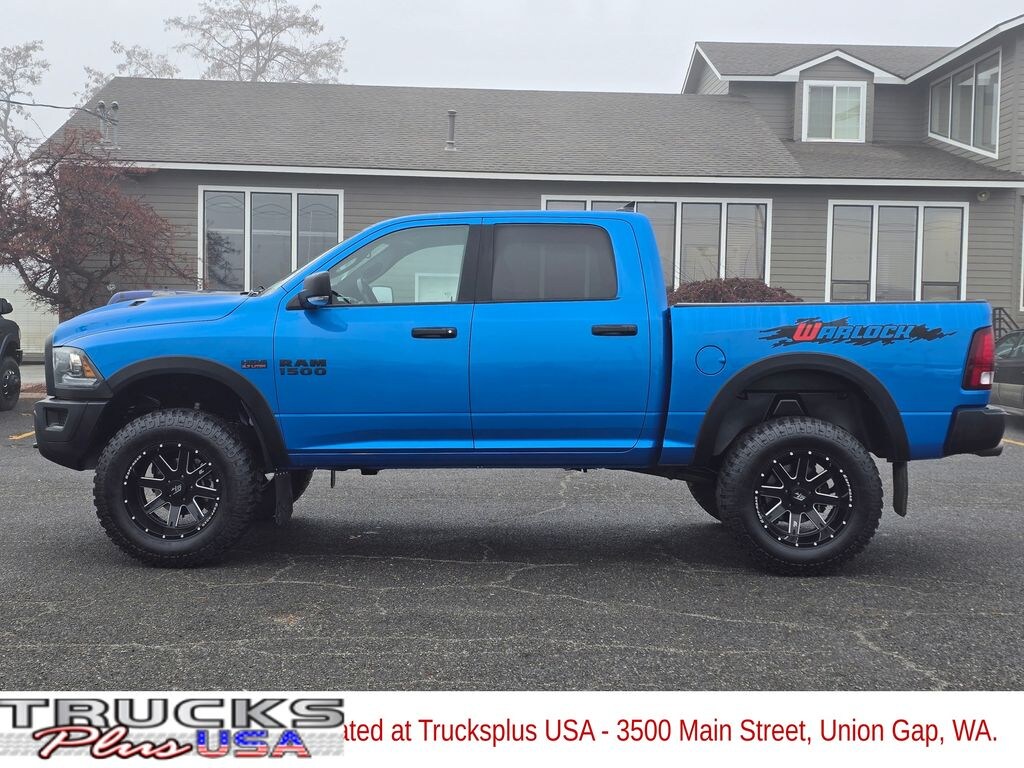 Recent Arrival! Clean CARFAX. Hydro Blue Pearlcoat 2022 Ram 1500 Classic Warlock HEMI 5.7L V8 Multi Displacement VVT 8-Speed Automatic 4WD 4D Crew Cab 1 Year Trial (Registration Required), 2nd Row In Floor Storage Bins, 4-Wheel Disc Brakes, 40/20/40 Split Bench Seat, 4G LTE Wi-Fi Hot Spot, 4x4 Flat Black Badge, 6 Speakers, 8.4" Touchscreen Display, ABS brakes, Active Grille Shutters, Air Conditioning, Air Conditioning ATC w/Dual Zone Control, Alloy wheels, AM/FM radio: SiriusXM, Apple CarPlay, Audio Input Jack for Mobile Devices, Auto-Dimming Exterior Mirrors, Auto-Dimming Rear-View Mirror, B-Pillar Black Out, Bi-Function Halogen Projector Headlamps, Black Exterior Mirrors, Black Exterior Truck Badging, Black Grille w/RAM Lettering, Black Headlamp Filler Panel, Black Powder Coated Front Bumper, Black Powder Coated Rear Bumper, Black RAM Head Tailgate Badge, Black Wheel Flares, Brake assist, Bumpers: chrome, Center Hub, Cloth 40/20/40 Bench Seat, Cluster 7.0" TFT Color Display, Compass, Delay-off headlights, Driver door bin, Dual front impact airbags, Dual front side impact airbags, Electronic Shift, Electronic Stability Control, Electronics Group, Engine Calibration Flash, V2, Exterior Mirrors Courtesy Lamps, Exterior Mirrors w/Heating Element, Exterior Mirrors w/Supplemental Signals, Flat Black 5.7L HEMI Badge, For Details Visit DriveUconnect.com, Front anti-roll bar, Front Armrest w/3 Cupholders, Front Center Armrest w/Storage, Front reading lights, Front wheel independent suspension, Front Wheel Well Liners, Fully automatic headlights, Global Telematics Box Module (TBM), Glove Box Lamp, Google Android Auto, GPS Antenna Input, Heated door mirrors, Illuminated entry, Integrated Center Stack Radio, Integrated Voice Command w/Bluetooth, Leather Wrapped Steering Wheel, LED Bed Lighting, Low tire pressure warning, Luxury Group, Media Hub (2 USB, AUX), MOPAR Sport Performance Hood, MOPAR Sport Performance Hood Decal, Occupant sensing airbag, Outside temperature display, Overhead airbag, Overhead console, Overhead Console w/Garage Door Opener, Panic alarm, ParkSense Rear Park Assist System, ParkView Rear Back-Up Camera, Passenger door bin, Passenger vanity mirror, Power door mirrors, Power Heated Fold-Away Mirrors, Power steering, Power windows, Power-Folding Mirrors, Quick Order Package 26F Warlock, Radio data system, Radio: Uconnect 3 w/5" Display, Radio: Uconnect 5 W w/8.4" Display, Raised Ride Height, Rear anti-roll bar, Rear Dome w/On/Off Switch Lamp, Rear Extra HD Shock Absorbers, Rear seat center armrest, Rear step bumper, Remote keyless entry, Remote USB Port, Remote USB Port - Charge Only, Rotary Shifter-Black, Semi-Gloss Black Hub, SiriusXM Guardian - Included Trial (B), Speed control, Sport Tail Lamps, Steering Wheel Mounted Audio Controls, Storage Tray, Sun Visors w/Illuminated Vanity Mirrors, Tachometer, Tilt steering wheel, Tip Start, Traction control, Trip computer, Universal Garage Door Opener, USB Host Flip, Variably intermittent wipers, Voltmeter, Warlock, Warlock Interior Accents, Wheels: 20" x 9" Semi-Gloss Black Aluminum.
